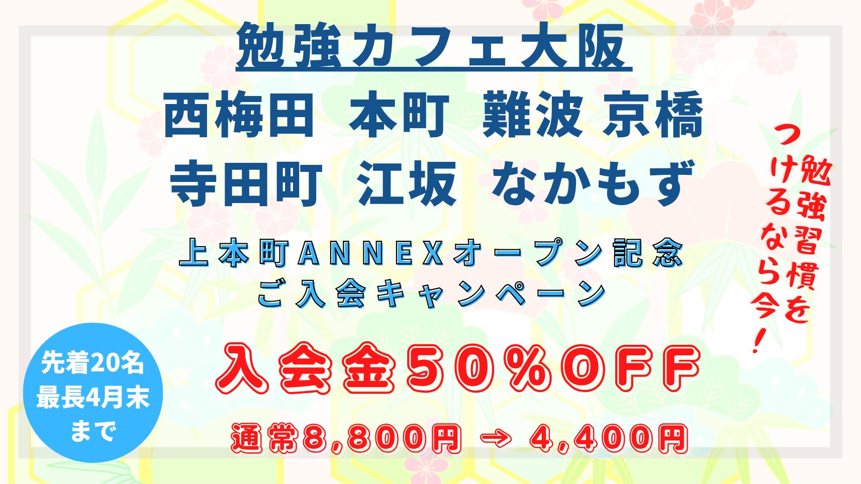今まで通常の会員利用だとライフスタイルに合わなくて断念していた方は、この機会に是非こちらを活用し、学びの生活を充実させてくださいませ。