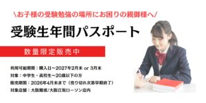 【受験生必見!】2026受験生年間パスポートの販売開始!